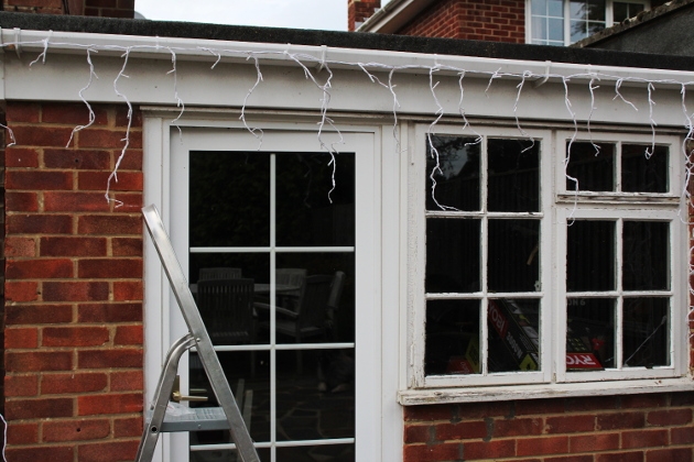 Many houses have an outdoor power point. Locate yours and, using a tape measure, determine the distance from power supply to where you intend to hang your lights. You will also want to measure the location you plan to hang lights, so you can determine how long you need your outdoor lights to be. If your power supply is not located close to where you want to hang your lights, you will also need an extension lead that is suitable for leaving outdoors in November-December.