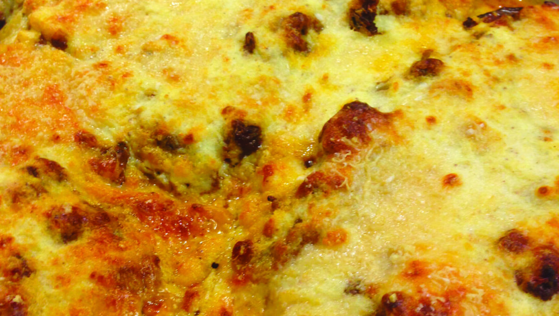 9. Pour the mix over the aubergines. Sprinkle on your chosen cheese and bake for 30 mins.