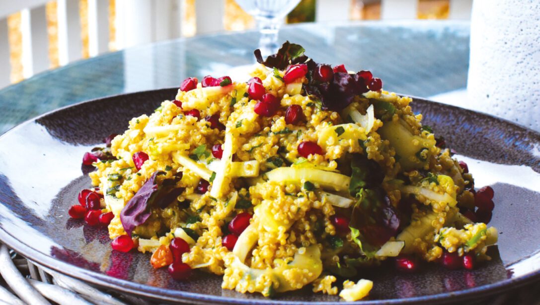 The texture of quinoa, with its subtle bite, combines with the sweet and slightly aniseed flavour of fennel to create a delicious summer salad.