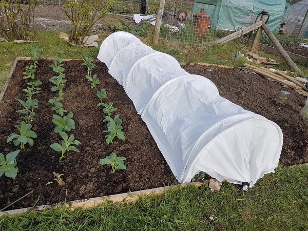 “Having planted my broad beans, I was about to put a collar around the base of my broccoli when I noticed the experienced ‘plotter’ next to me was using fleece to cover and some bird protection instead. I changed my mind and covered my broccoli with a fleece tunnel instead, which combines the bird protection along with keeping the plants warmer for a little longer. The homemade collars will have to wait for a later date.”