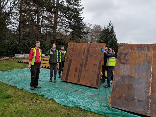 The steel, provided by The Pot Company, arrived at our nursery in early March, ready to be treated to give us the desired finish for display in the garden before being transported to Chelsea. The Corten steel has had a salt water solution sprayed on to it twice a day since it arrived to give it the required look. At Hillier, we are renowned for our trees and the 2018 Hillier garden will feature trees with a combined height of 61.5m, which is taller than the Leaning Tower of Pisa!