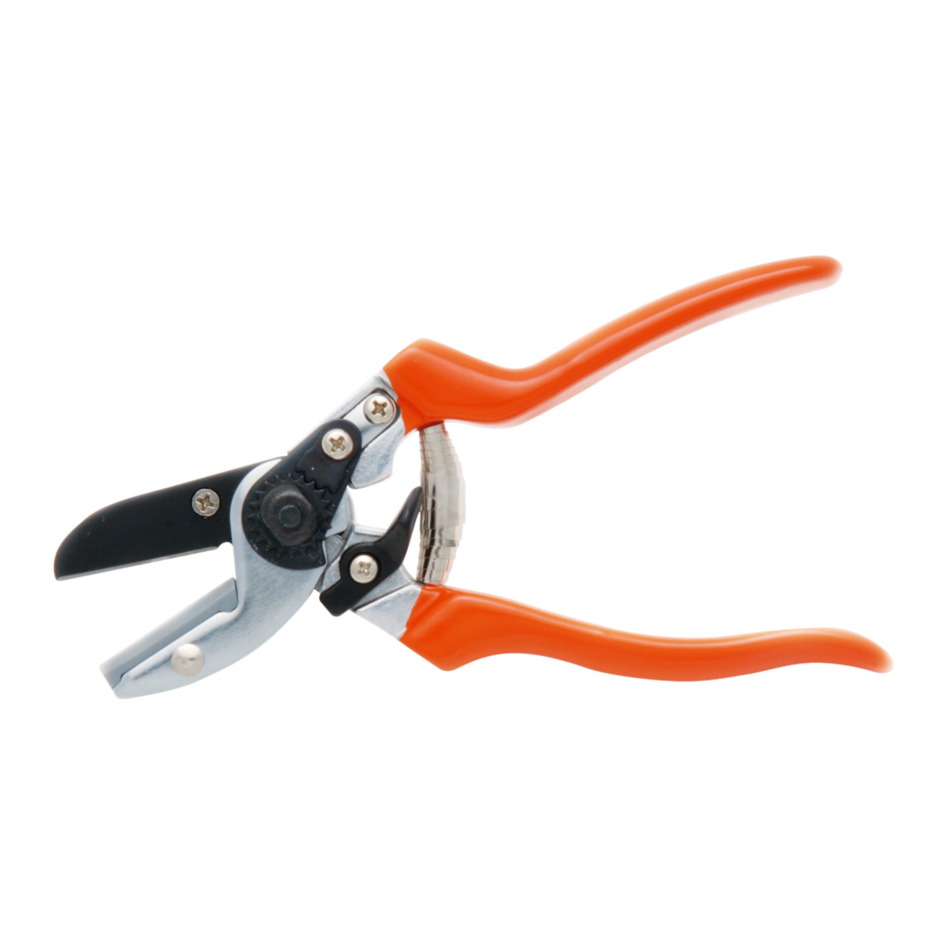 Fully hardened and tempered, high carbon steel blade for lasting sharpness. Durable resin anvil. Robust alloy handles, covered in a comfortable, bright terracotta-coloured grip.
