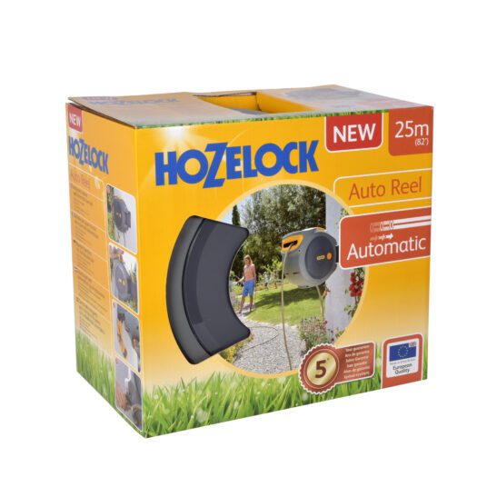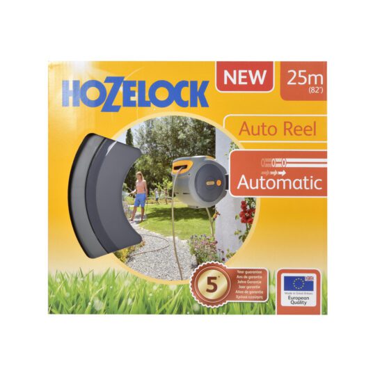 The Hozelock 25m Autoreel & Multispray Gun is a versatile, wall-mounted hose reel designed to make watering your garden easier. It comes with a 25-metre hose that automatically rewinds, ensuring it’s always neatly stored away. The included multispray gun offers various spray patterns to suit all your watering needs, from gentle misting for delicate plants to a powerful jet for cleaning tasks. This reliable and convenient system helps you keep your garden looking its best with minimal effort.