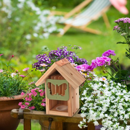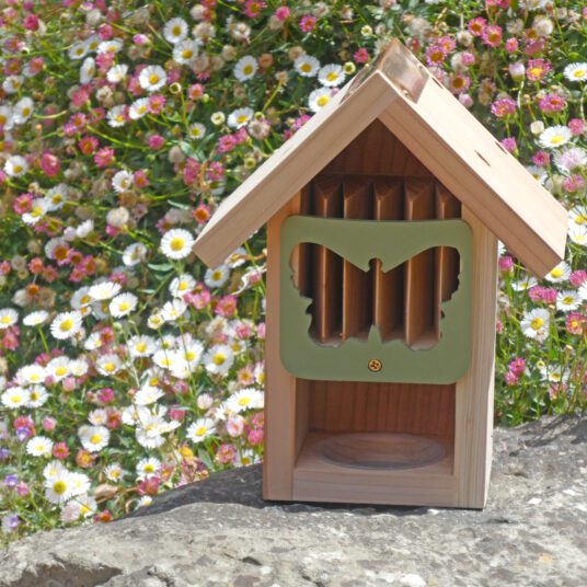 Feed & provide shelter for butterflies in your garden with our new Butterfly Barn. Part of our new Barn Range. The Butterfly Barn provides a safe home for all types of butterflies, moths and lacewings. Designed not only for butterflies but also many other species of pollinating insects. The slatted center provides resting and sheltering spots. The Barn’s recycled plastic door swivels, allowing access to the nesting compartment for cleaning and to carefully observe species during cooler weather.