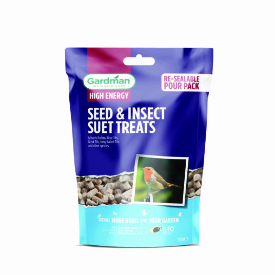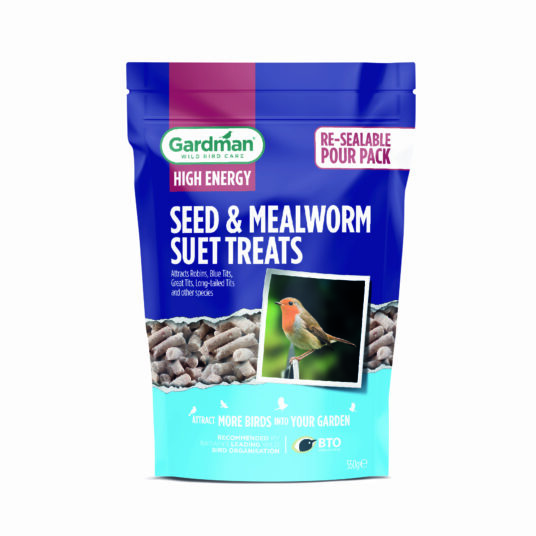 Gardman Seed and Mealworm Suet Treats are high in energy to help fuel birds for longer. High energy suet treats in re-sealable pour pack. Recommended all year round feeding but an excellent winter food. High In Fat. High Energy.
